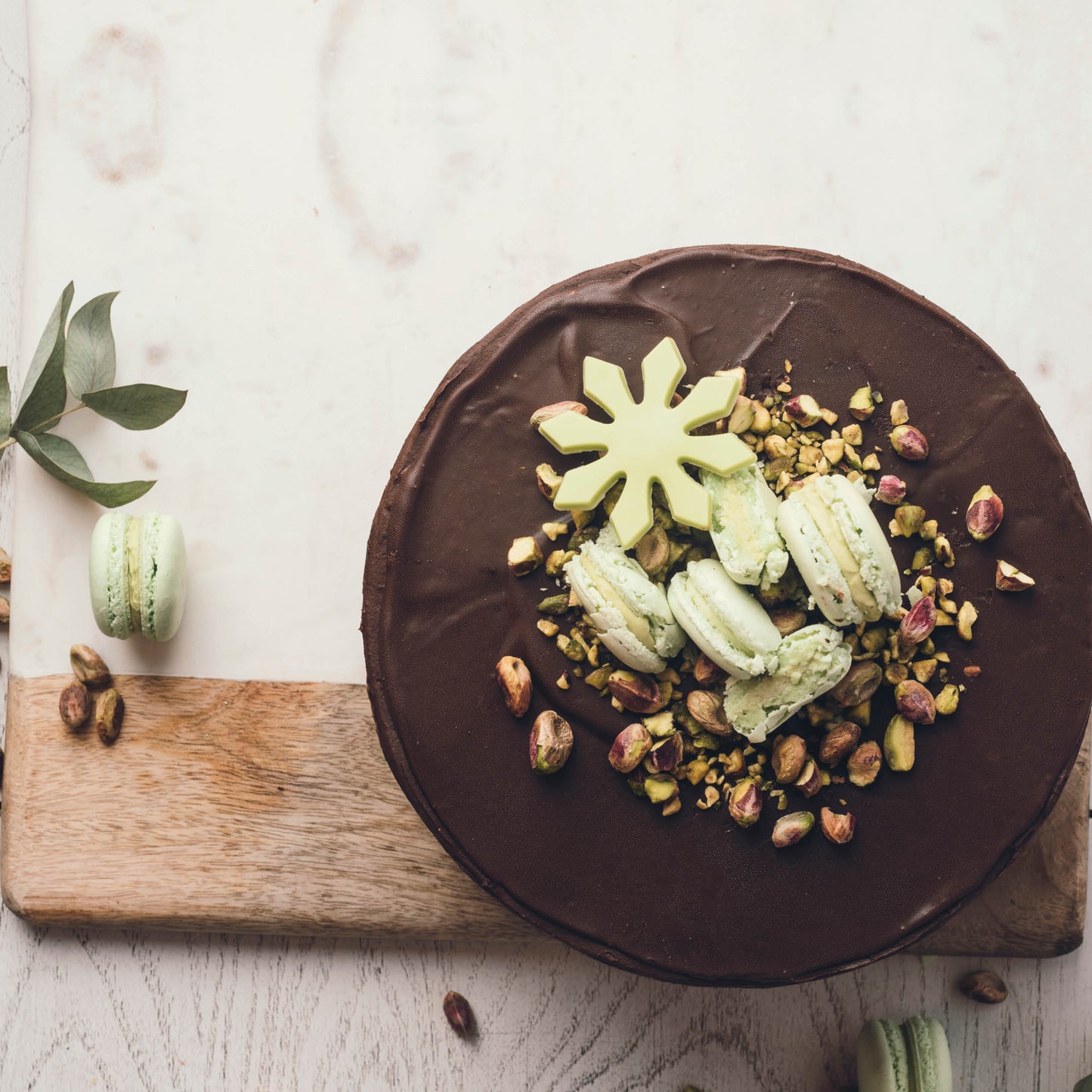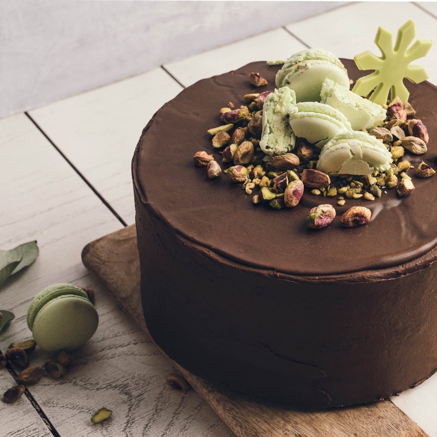 One of our most popular cakes and is ideal for those who are looking for a deliciously rich cake. Made with a layer of chocolate and pistachio on a light sponge, covered in a rich chocolate cream.