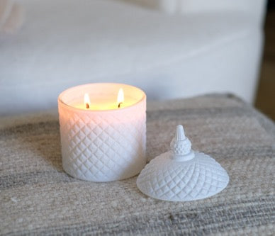 Large Double Wick, 350ml Candle | Burn Time 45 hours | Matte White Jar with Lid