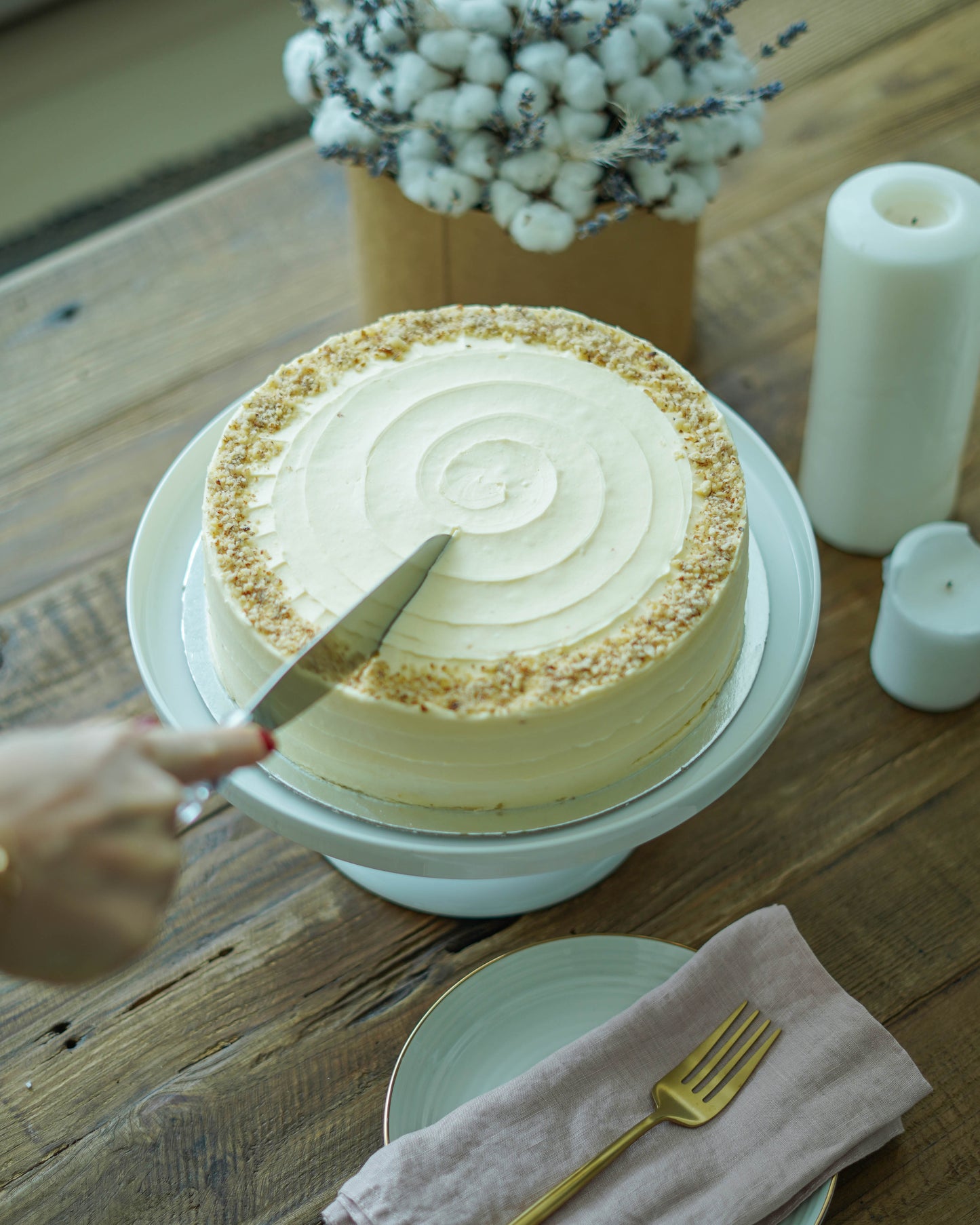 Enjoy this delectable two-layered vanilla cake.