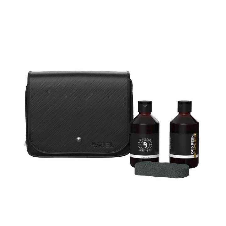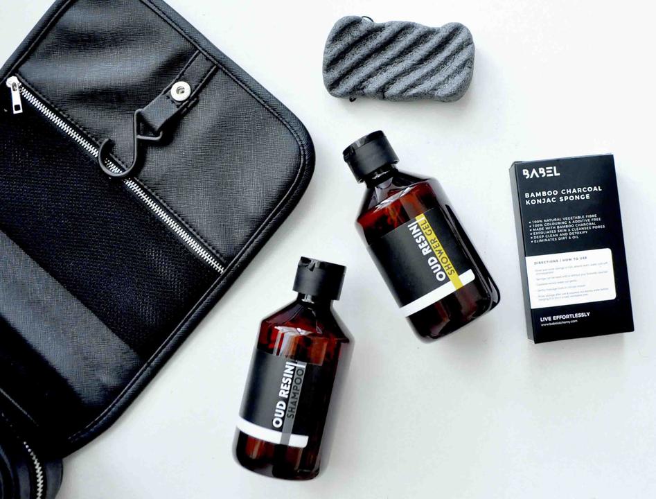 Comes with free toiletry bag & charcoal sponge! Sleek and sophisticated, our White Box Shower Kit has everything a man needs to clean up his act, fast.